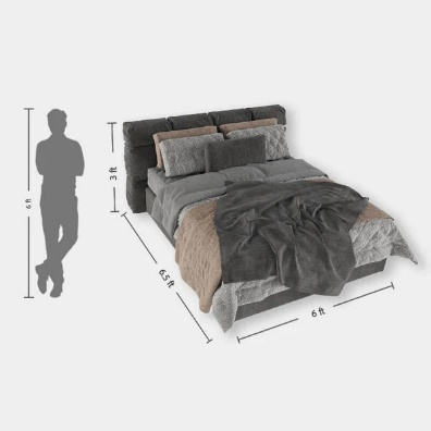 Velvet Upholstered Classical King-Size Grey Bed